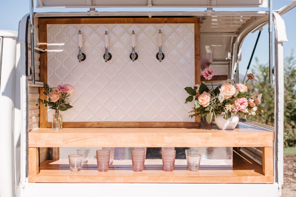 Our cart is equipped with four taps that can dispense various beverages, including beers, wines, prosecco, or ciders. We can supply your special occasion with alcohol from one of our many winery partners, or you can request your favorite drink choices.